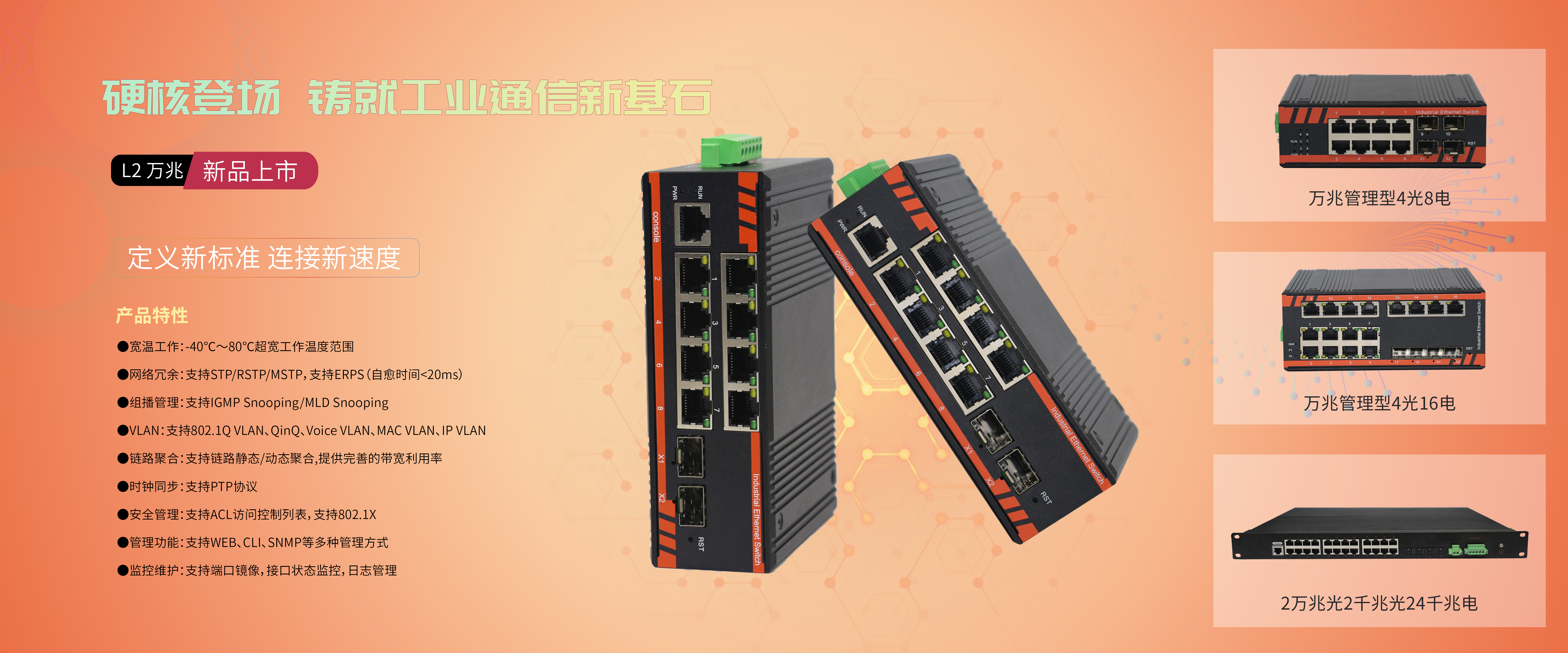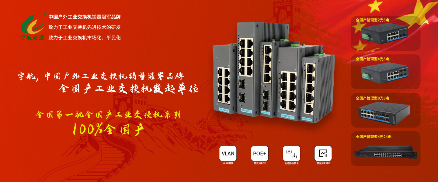 深圳市宇航光通科技有限公司總部位于深圳,是一家聚焦工業以太網產品研發,生產,銷售和服務為主營業務的國家專精特“小巨人”和國高、深高的科技企業,為客戶提供高性價比的工業以太網產品和解決方案。宇航是國產工業交換機最大的源頭廠商,被人稱為“工業交換機沃爾瑪”,聚焦工業交換機產品,質量做到極致、價格做到極致、服務做到極致。宇航在工業以太網產品領域獲得了多項創新型的技術成果,連續多年中國工業產品十大品牌、十大安防品牌,連續三年中國信創產業500強,中國信創產業獨角獸100強,中國信創產業領軍企業100強,工信部、公安部等智慧城市首推品牌,宇航光通專注于工業交換機品牌渠道和項目市場,以及中大型客戶OEM/ODM市場。宇航,全國產工業交換機發起單位,讓全世界都能用上中國制造的工業交換機。宇航,致力于工業交換機先進技術的研發,致力于工業交換機市場化和平民化。