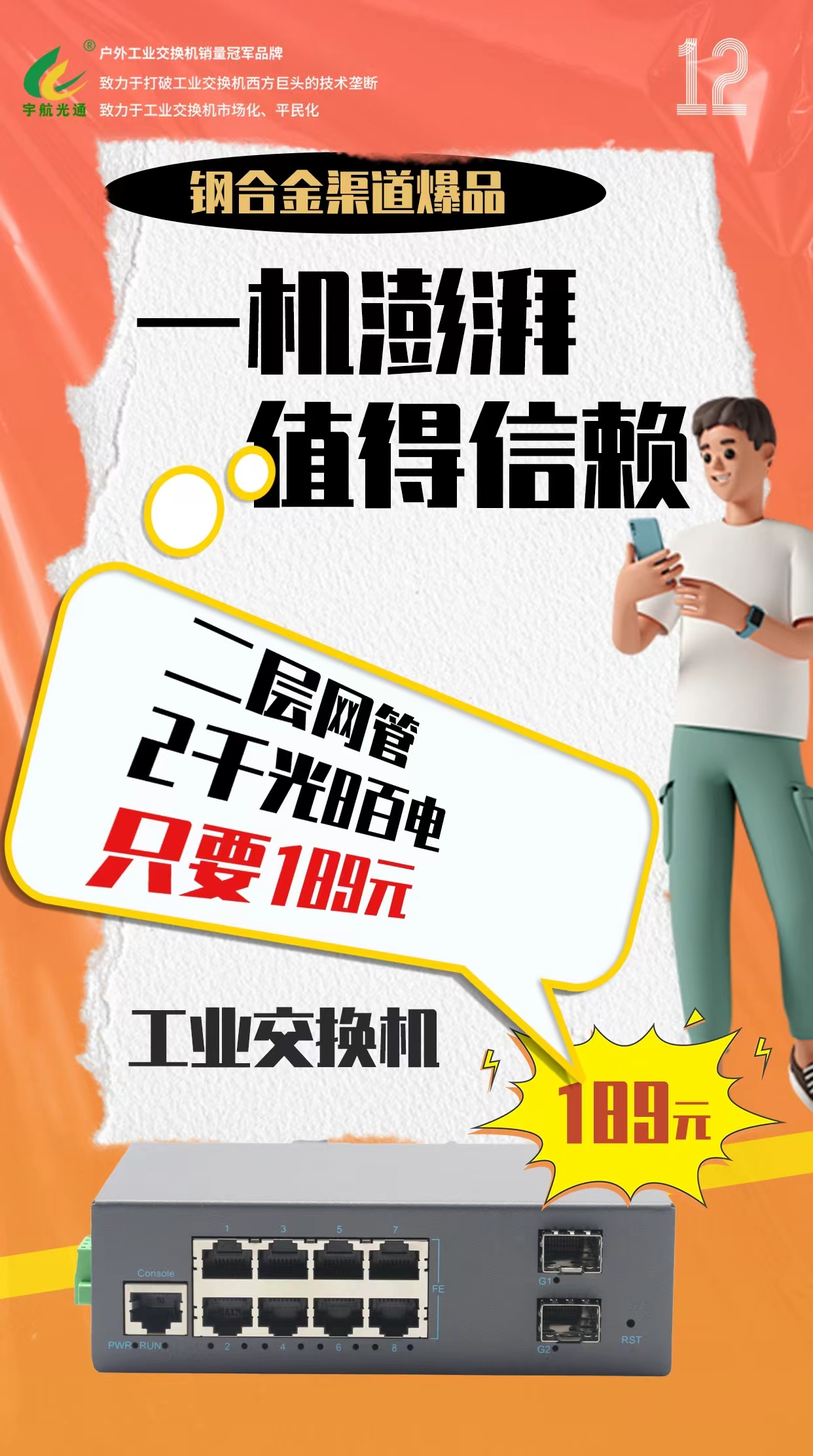 值得一提的是,宇航工業(yè)交換機在本次大會上重點展示了最新推出的鋼合金渠道爆品系列產(chǎn)品。這一系列產(chǎn)品是宇航在深入研究市場需求和競爭態(tài)勢的基礎(chǔ)上,應(yīng)市場要求推出的全國產(chǎn)鋼合金系列產(chǎn)品。該系列產(chǎn)品不僅繼承了宇航工業(yè)交換機一貫的高品質(zhì)、高可靠性特點,還在價格上更具競爭力,為市場端和客戶提供了更多元化的選擇。