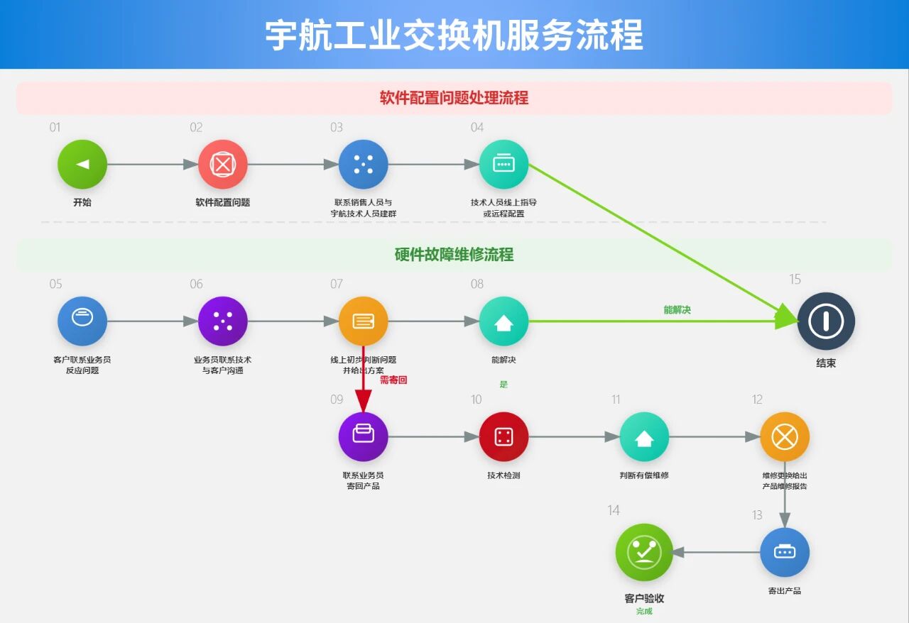 行業(yè)領(lǐng)先的3-5年超長質(zhì)保周期,7×24小時專業(yè)技術(shù)團隊快速響應(yīng),售后服務(wù)有保障。更有免費增值服務(wù):宇航自研AI智能網(wǎng)管平臺、專業(yè)網(wǎng)絡(luò)拓撲設(shè)計、現(xiàn)場技術(shù)勘測與方案驗證,從部署到運維,讓您的工業(yè)網(wǎng)絡(luò)全程省心!