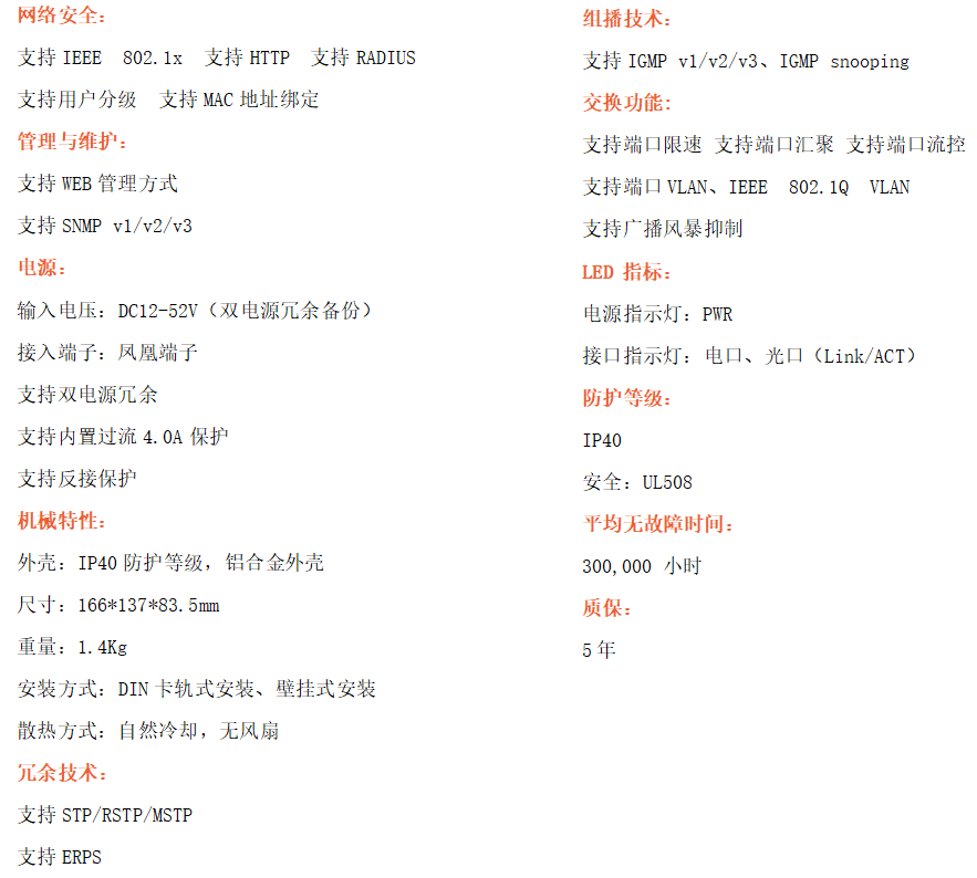 ●告警功能:支持電源,端口,異常狀態(tài)繼電器輸出IP40防護(hù)等級(jí)