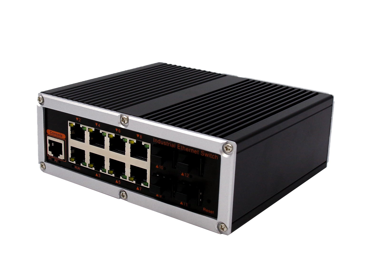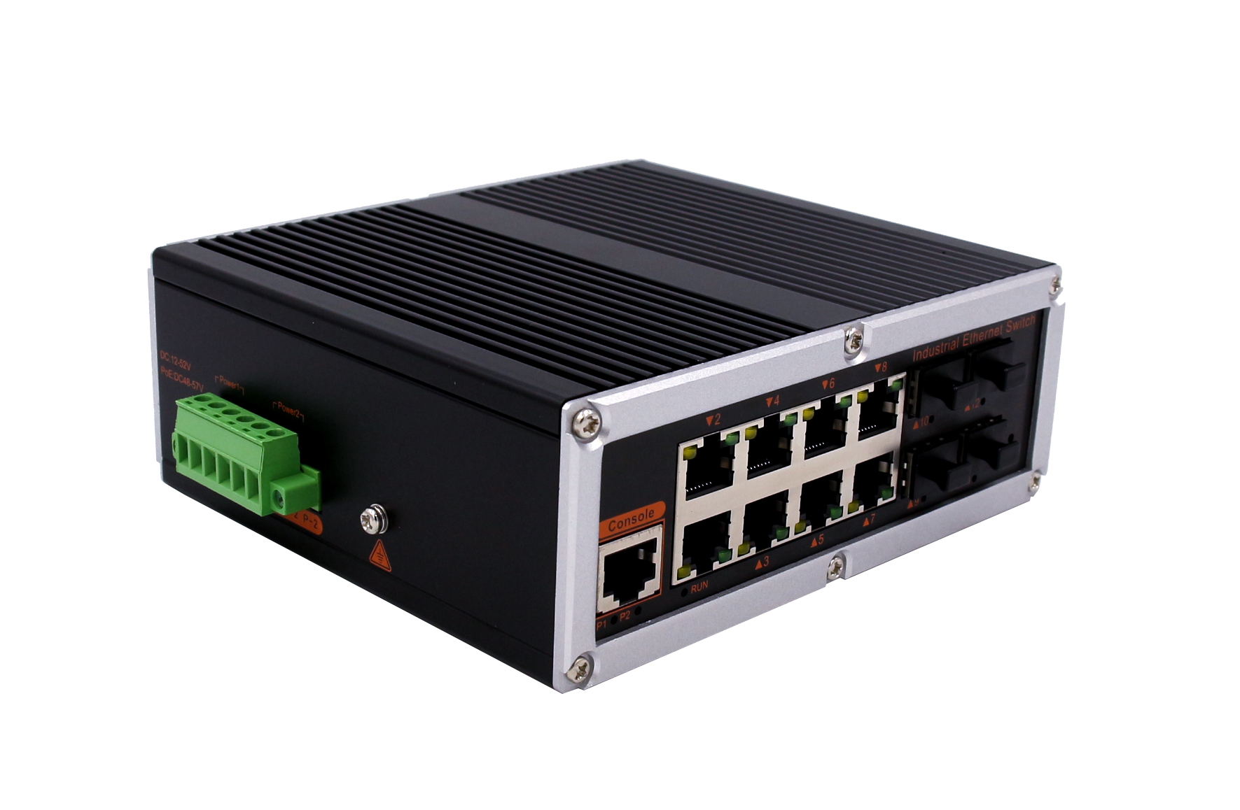 4個千兆光+8個千兆電、SFP接口(不含光模塊)、導軌式、DC12-52V供電
