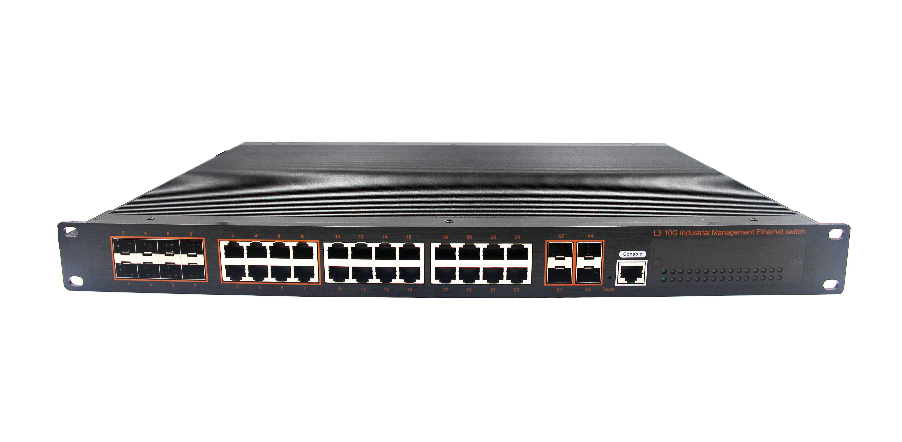 24千兆電+8千兆光+4個萬兆光萬兆網(wǎng)管型機架式工業(yè)匯聚交換機 |