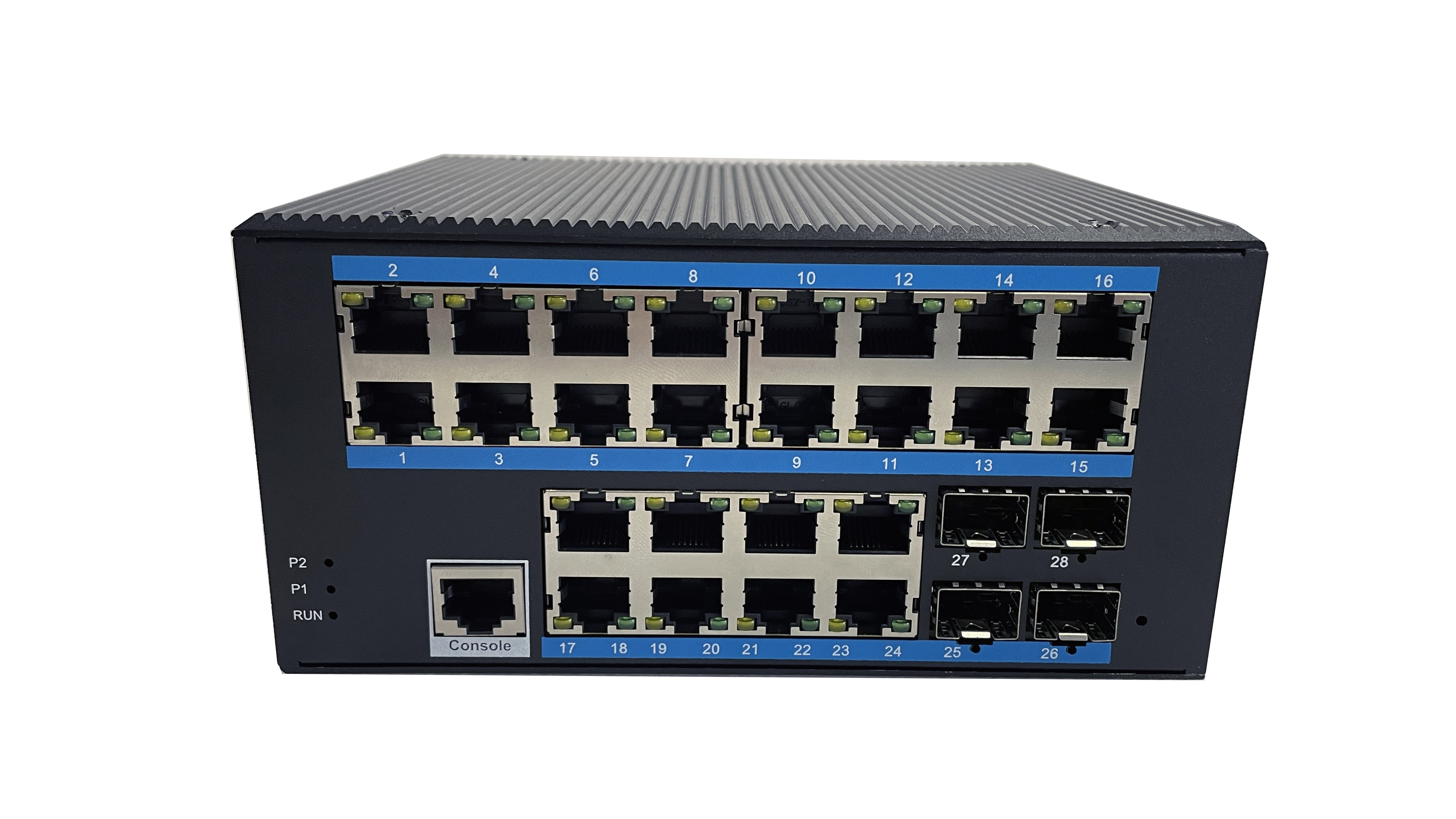 YH600-424GS-M-SFP是網管型工業以太網交換機,產品符合FCC、CE、RoHS標準。支持4個千兆光口和24個千兆電口;支持工業現場所需的以太網二層協議,保證通信網絡的穩定性;該系列交換機采用低功耗、無風扇設計,確保無噪聲干擾,同時支持-40~80℃工作溫度和良好的EMC電磁兼容性能,保證在惡劣的工業環境中保持穩定的工作,為工廠自動化,智能交通,視頻監控等工業應用領域組建快速穩定的網絡終端接入網絡提供安全可靠的解決方案。