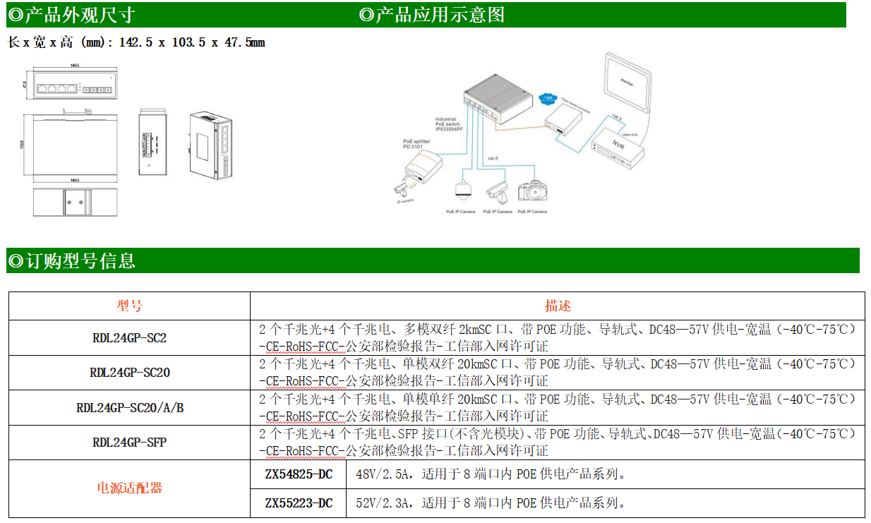 4路千兆POE電口+2路千兆FX光口工業(yè)級以太網(wǎng)POE交換機,支持4個10/100/1000Base-TX電口和2個1000Base-X光口。產(chǎn)品符合FCC、CE、ROHS標準。RDL24GP-SFP交換機具有-40℃~75℃的工作溫度,具有超強的堅固度能適應各種嚴苛環(huán)境,也可以非常方便的安置在空間緊湊的控制箱中。導軌的安裝特性、寬溫操作及擁有IP40防護等級的外殼及LED指示燈,使RDL24GP-SFP成為一個即插即用的工業(yè)級設(shè)備,為用戶的以太網(wǎng)設(shè)備聯(lián)網(wǎng)提供可靠、便捷的解決方案。