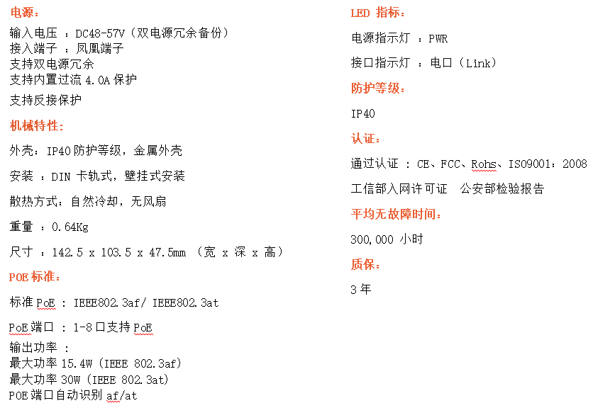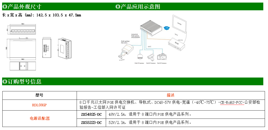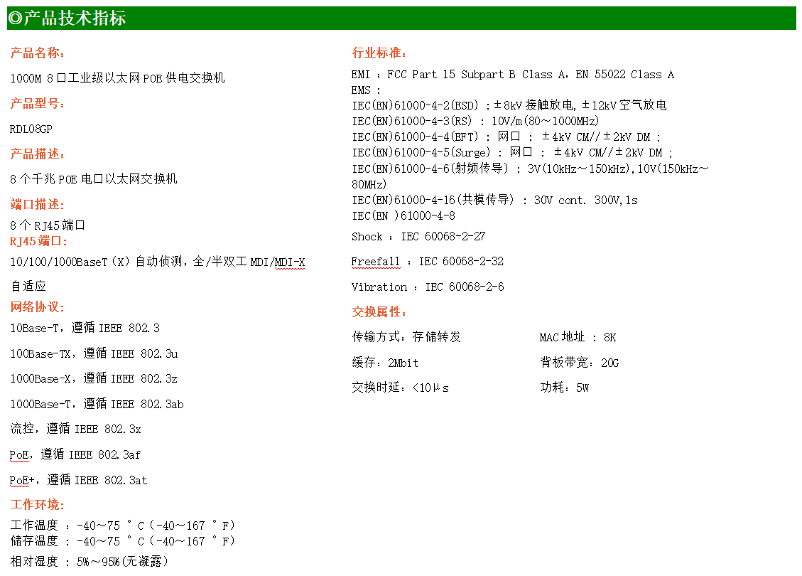 8路千兆電口工業(yè)級(jí)以太網(wǎng)交換機(jī),支持8個(gè)10Base-T/100Base-TX/1000Base-TX POE電口。產(chǎn)品符合FCC、CE、ROHS標(biāo)準(zhǔn)。RDL08GP交換機(jī)具有-40℃~75℃的工作溫度,具有超強(qiáng)的堅(jiān)固度能適應(yīng)各種嚴(yán)苛環(huán)境,也可以非常方便的安置在空間緊湊的控制箱中。導(dǎo)軌的安裝特性、寬溫操作及擁有IP40防護(hù)等級(jí)的外殼及LED指示燈,使RDL08GP成為一個(gè)即插即用的工業(yè)級(jí)設(shè)備,為用戶的以太網(wǎng)設(shè)備聯(lián)網(wǎng)提供可靠、便捷的解決方案。