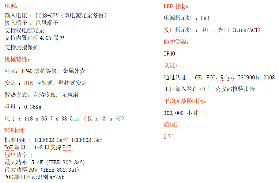 2路千兆POE電口+1路千兆FX光口工業(yè)級以太網(wǎng)POE交換機,支持2個10/100/1000Base-TX電口和1個1000Base-X光口。產(chǎn)品符合FCC、CE、ROHS標準。RD12GP系列交換機具有-40℃~80℃的工作溫度,具有超強的堅固度能適應各種嚴苛環(huán)境,也可以非常方便的安置在空間緊湊的控制箱中。導軌的安裝特性、寬溫操作及擁有IP40防護等級的外殼及LED指示燈,使RD12GP成為一個即插即用的工業(yè)級設備,為用戶的以太網(wǎng)設備聯(lián)網(wǎng)提供可靠、便捷的解決方案。