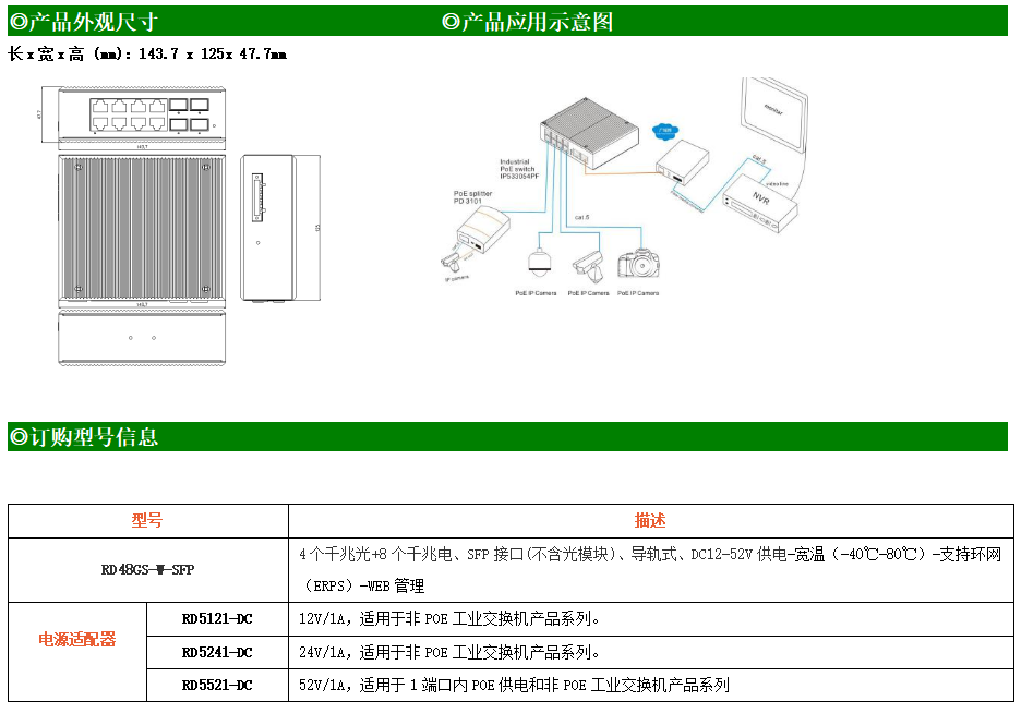 RD48GS-W-SFP系列WEB網(wǎng)管工業(yè)級以太網(wǎng)交換機,產(chǎn)品符合FCC、CE、ROHS標準,支持工業(yè)現(xiàn)場所需的以太網(wǎng)二層協(xié)議,保證通信網(wǎng)絡(luò)的穩(wěn)定性。該系列交換機采用低功耗、無風扇設(shè)計,確保無噪聲干擾,同時支持-40~80℃工作溫度和良好的EMC電磁兼容性能,保證在惡劣的工業(yè)環(huán)境中保持穩(wěn)定的工作,為工廠自動化,智能交通,視頻監(jiān)控等工業(yè)應(yīng)用領(lǐng)域組建快速穩(wěn)定的網(wǎng)絡(luò)終端接入網(wǎng)絡(luò)提供安全可靠的解決方案。