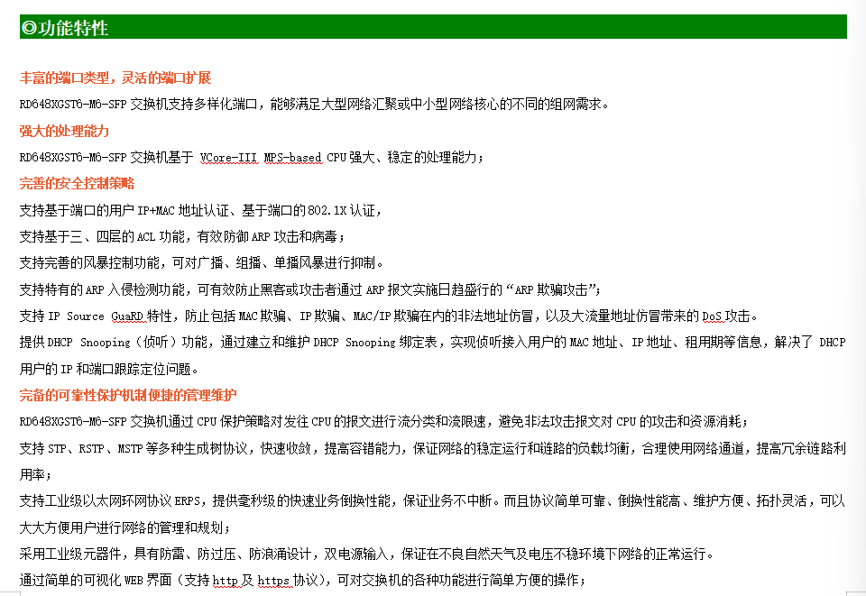 ●監(jiān)控維護(hù):支持端口鏡像,接口狀態(tài)監(jiān)控,日志管理