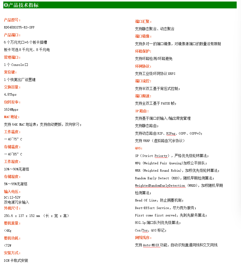 RD648XGST6-M6-SFP交換機(jī)是我司推出的一款千萬兆混合三層交換機(jī),采用模塊化結(jié)構(gòu)設(shè)計,支持機(jī)框與板卡多種組合方式,網(wǎng)絡(luò)規(guī)劃配置更加輕松和靈活。機(jī)框提供6個萬兆SFP+光口+1路三合一RS232/RS422/RS485串口,板卡支持8千兆光、8千兆電可選。豐富的接口數(shù)量、千萬兆混合的帶寬,具有高性能高速率傳輸大量視頻、語音和數(shù)據(jù)的能力,能滿足大規(guī)模工業(yè)網(wǎng)絡(luò)的應(yīng)用需求。