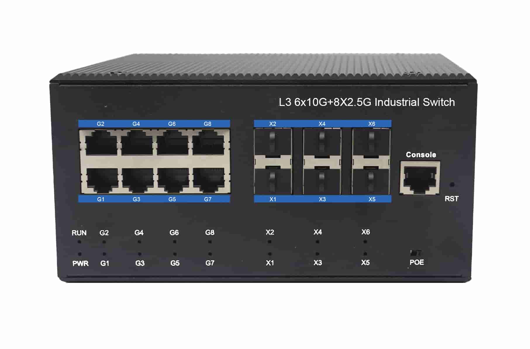 RD8MS6TP-SFP交換機是我司推出的一款萬兆三層工業以太網交換機,產品符合FCC、CE、RoHS標準。可提供8個2.5G PoE端口,所有PoE端口符合IEEE802.3af/at/bt標準。具備先進的硬件處理能力和最豐富的業務特性。支持IPv4/IPv6 硬件雙棧及線速轉發,使客戶能夠從容應對即將帶來的IPv6 時代其提供高容量的交換能力。RD8MS6TP-SFP交換機具有-40℃~70℃的工作溫度,具有超強的堅固度能適應各種嚴苛環境。導軌式安裝特性、寬溫操作,使RD8MS6TP-SFP的交換機成為一個即插即用的工業級設備,為用戶的以太網設備聯網提供可靠、便捷的解決方案。