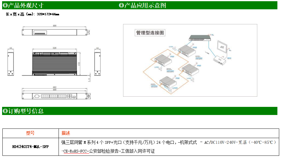 RD424GST4-MQL-SFP交換機是我司推出的一款萬兆三層交換機,配備4個萬兆SFP+光口和24個10/100/1000M Base-T自適應電口,具備先進的硬件處理能力和最豐富的業(yè)務特性。支持IPv4/IPv6 硬件雙棧及線速轉發(fā),使客戶能夠從容應對即將帶來的IPv6 時代其提供高容量的交換能力。RD424GST4-MQL-SFP交換機具有-40℃~85℃的工作溫度,具有超強的堅固度能適應各種嚴苛環(huán)境。導軌式安裝特性、寬溫操作,使RD424GST4-MQL-SFP的交換機成為一個即插即用的工業(yè)級設備,為用戶的以太網設備聯網提供可靠、便捷的解決方案。