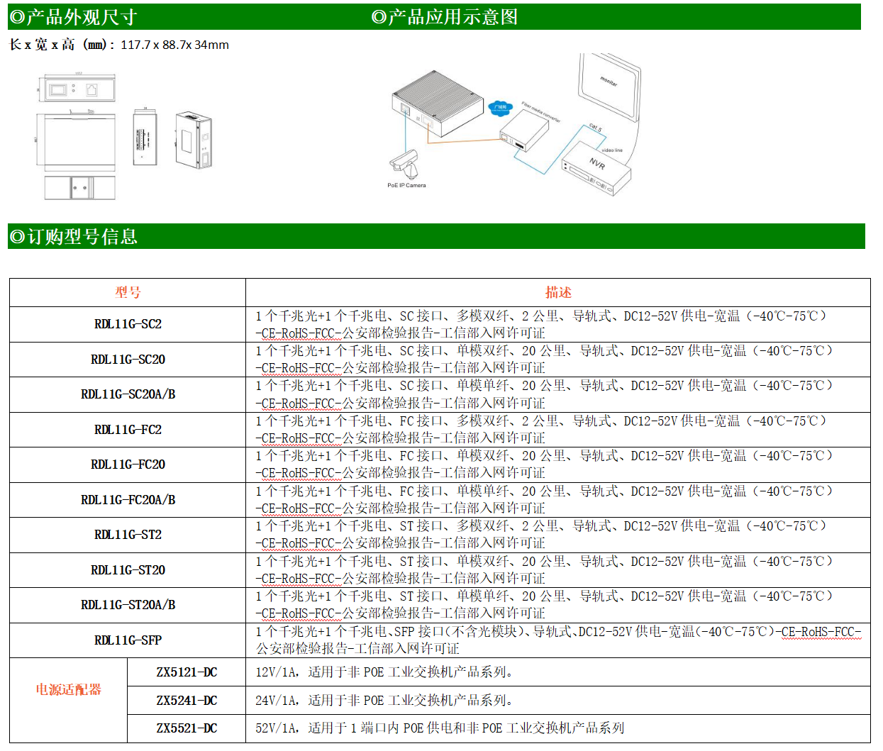 ●使用SC/FC/ST/SFP光纖接口