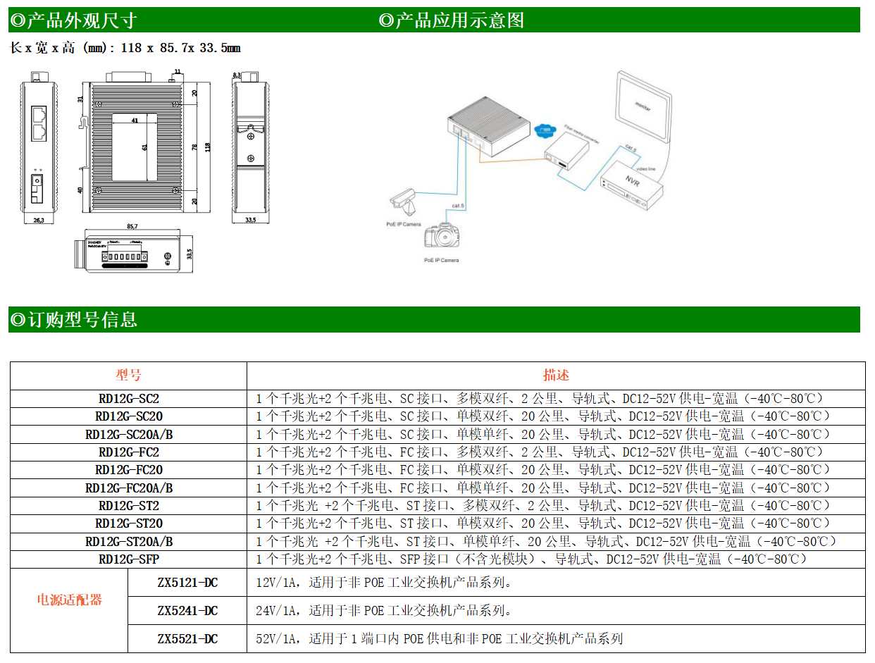 ●使用SC/FC/ST/SFP光纖接口