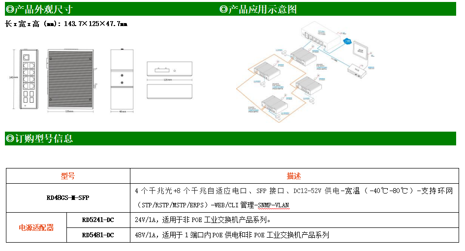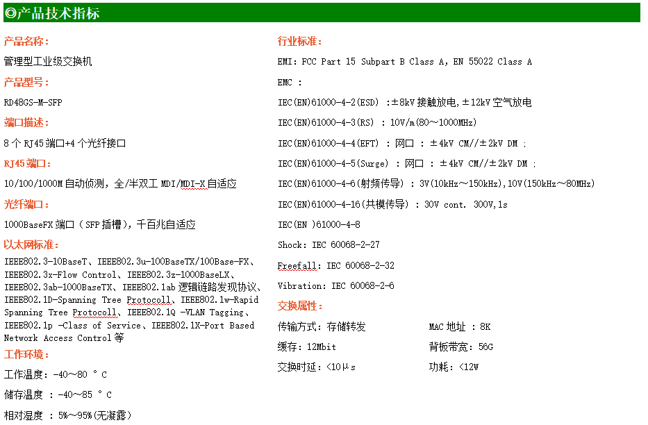 RD48GS-M-SFP是網(wǎng)管型工業(yè)以太網(wǎng)交換機(jī),產(chǎn)品支持4個(gè)千兆光口和8個(gè)千兆電口;支持工業(yè)現(xiàn)場(chǎng)所需的以太網(wǎng)二層協(xié)議,保證通信網(wǎng)絡(luò)的穩(wěn)定性;該系列交換機(jī)采用低功耗、無(wú)風(fēng)扇設(shè)計(jì),確保無(wú)噪聲干擾,同時(shí)支持-40~80℃工作溫度和良好的EMC電磁兼容性能,保證在惡劣的工業(yè)環(huán)境中保持穩(wěn)定的工作,為工廠自動(dòng)化,智能交通,視頻監(jiān)控等工業(yè)應(yīng)用領(lǐng)域組建快速穩(wěn)定的網(wǎng)絡(luò)終端接入網(wǎng)絡(luò)提供安全可靠的解決方案。