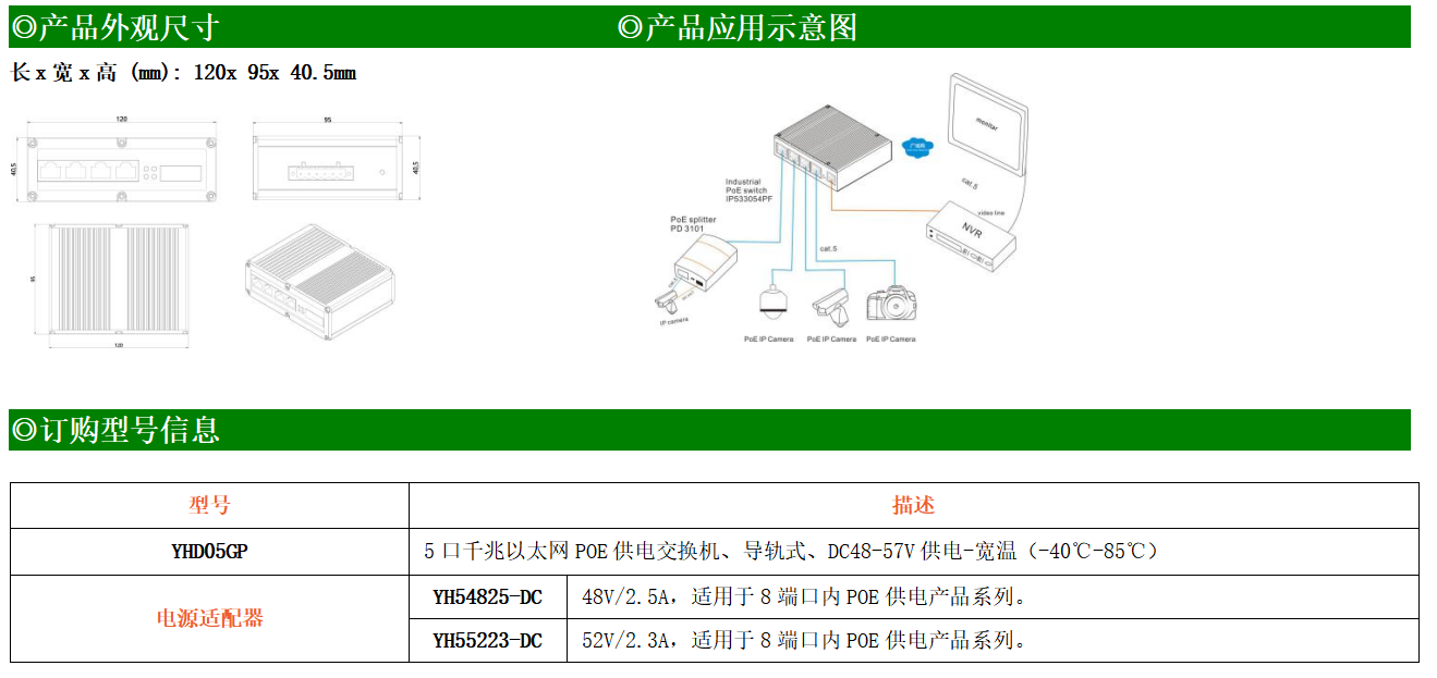 1路千兆上聯(lián)電口+4路千兆下聯(lián)電口工業(yè)級以太網(wǎng)POE交換機(jī),支持1個(gè)10/100/1000Base-TX上聯(lián)電口和4個(gè)100Base-T/1000Base-TX下聯(lián)POE電口。產(chǎn)品符合FCC、CE、ROHS標(biāo)準(zhǔn)。YH300-05GP交換機(jī)具有-40℃~85℃的工作溫度,具有超強(qiáng)的堅(jiān)固度能適應(yīng)各種嚴(yán)苛環(huán)境,也可以非常方便的安置在空間緊湊的控制箱中。導(dǎo)軌的安裝特性、寬溫操作及擁有IP40防護(hù)等級的外殼及LED指示燈,使YH300-05GP成為一個(gè)即插即用的工業(yè)級設(shè)備,為用戶的以太網(wǎng)設(shè)備聯(lián)網(wǎng)提供可靠、便捷的解決方案。